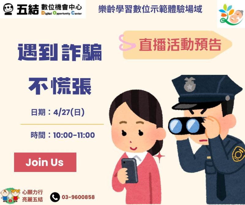 【直播預告】遇到詐騙不慌張!你我都該學會自保! 現在詐騙手法層出不窮,不只假檢警、假網購,連AI變聲、Deepfake影片都登場了! 你以為自己不會上當?小心騙...(詳細內容)