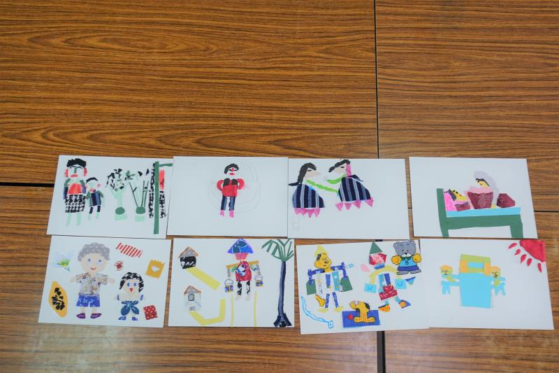 隨後,政霖老師帶領長輩們將從家中帶來的舊衣物與照片,加工再製成拼貼畫作品,並口述分享創作緣由。美圓姐便以自己幼時伴陪母親從苗栗頭屋鄉到市區賣豆腐的經驗,為創作的靈感發想;並在最後,結合政霖老師文字整理成果,與拼貼畫作品完成數張的相片卡。