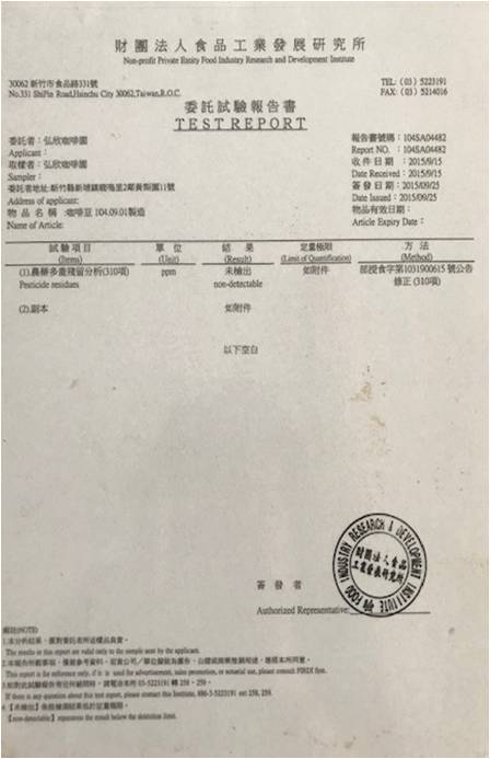 一路走來,楊肇清始終秉持無毒、有機栽種信念,以百慕達草作為綠肥,不噴灑農藥、不施化肥,全園區無毒草生裁種,在2015年透過食品研究所的安全檢驗,得到無毒檢驗認證。目前「弘欣咖啡園」提供以中淺焙,保有微果酸味,不苦不澀,的半磅裝咖啡豆、咖啡粉為主,另有10包入的耳掛式咖啡包品項選擇,單次訂購大量生豆者,亦可配合烘焙喜好。