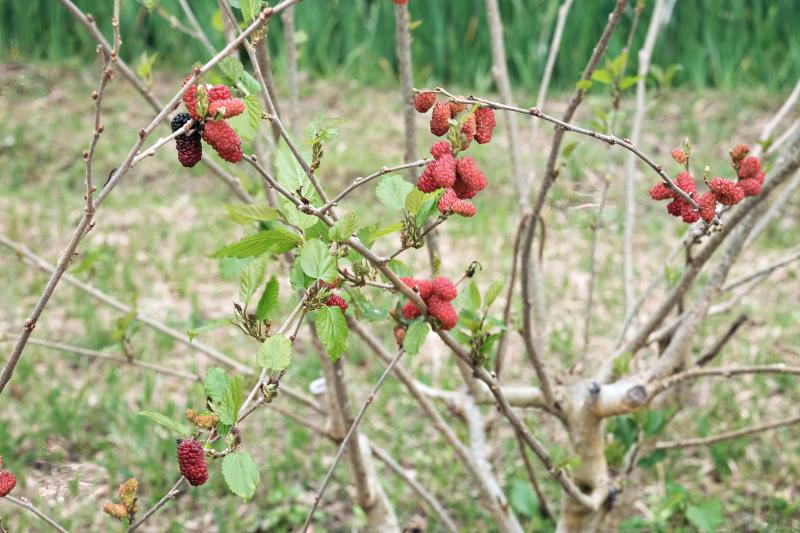 因為新冠疫情,讓身為導遊十多年的范大哥,決定提前自己規劃已久的退休計畫,回到家鄉當一名快樂農夫。范大哥考量到關西鎮以種植柑橘類居多,加上幼時母親種植桑椹,每逢產季的新鮮桑葚果實,那甜中帶點酸的美好滋味,就是他幼時最難忘的零嘴,因此,他選擇在自家田園栽種大果種桑椹,也建立「阡陌友善農場」品牌。