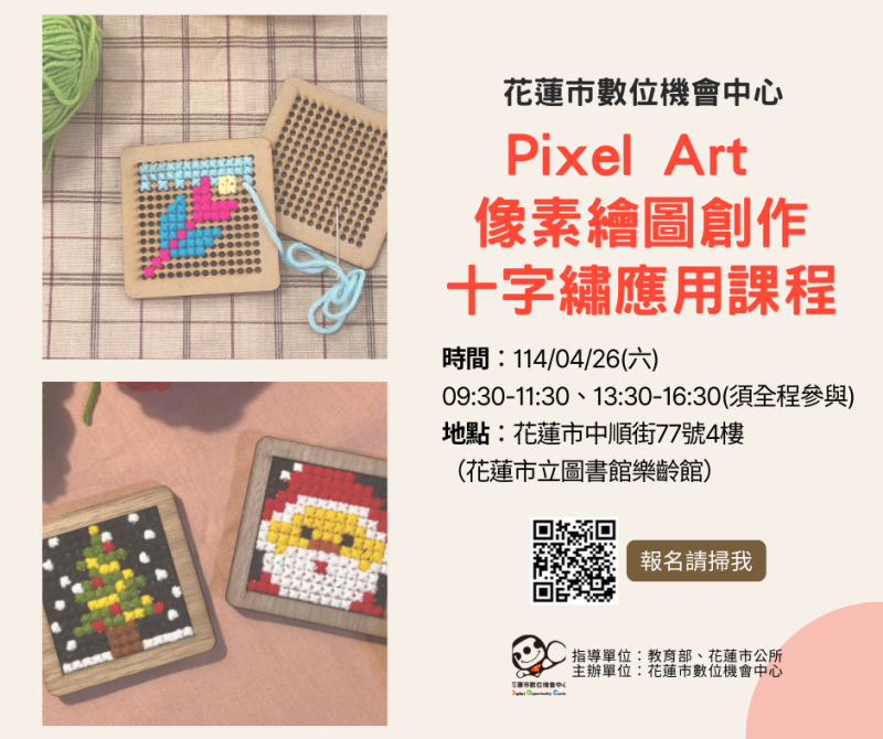 花蓮市數位機會中心開課囉~4/26(六) Pixel Art 像素繪圖應用~ 十字繡創作課程~