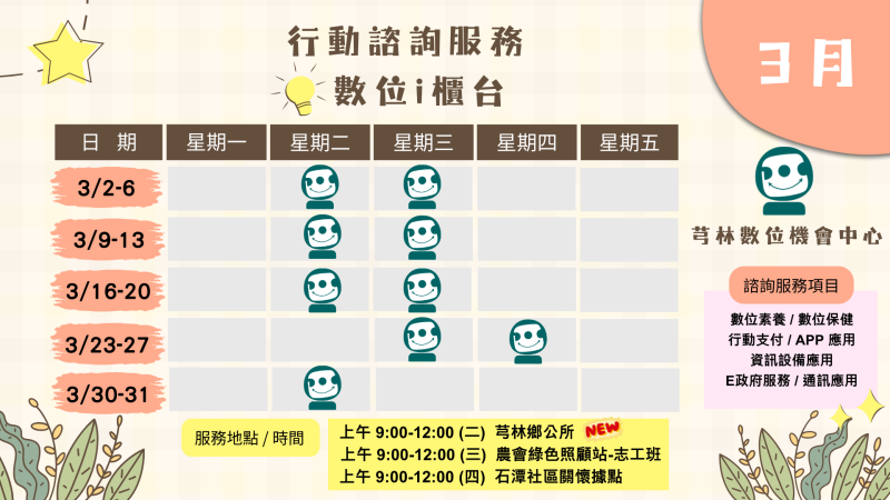 3月服務日程表: