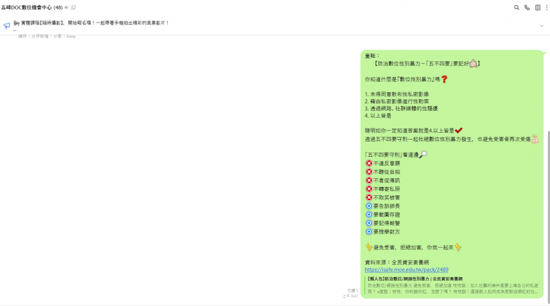透過五不四要守則一起杜絕數位性別暴力發生,也避免受害者再次受傷(strong arm)