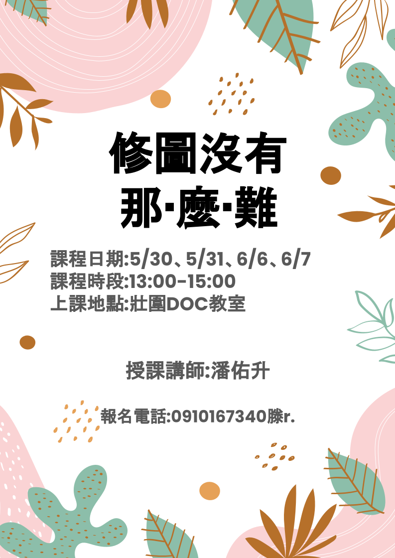日期: 5/30、5/31、6/6、6/7 時間: 13:00~15:00 地點: 壯圍DOC教室