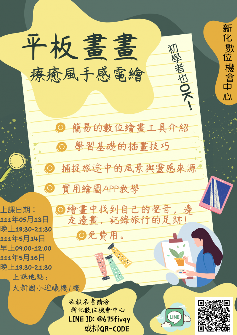 那就來「新化數位機會中心」,教你用平板畫畫~ 畫錯了一個復原就好 輕鬆上手又療癒 課程完全無費用。 歡迎你們的加入~