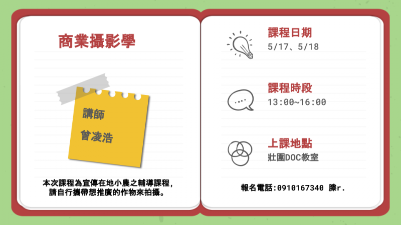 想推廣自家作物但又拍不出理想的照片嗎,那這門課程一定要來試試看喔~。