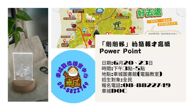 最新消息 DOC快訊 ::: <上一則 返回列表 下一則> 「剛剛好」的簡報才高明-Power Point 發布日期:2022-05-11 人氣:148 文書處理基礎課程Word、Excel、PowerPoint 招生囉! 三門課程讓您一次學會 會一點點對任何事總是比不會來的美好,基礎文書處理課程開課囉! Word、Excel、讓您簡單上手並成為幫手, 『剛剛好』的簡報PowerPoint讓您人生倍覺精彩 車城DOC陪您一起來學習-豐富自我 報名專線: 08-882-2749 <上一則 返回列表 下一則>
