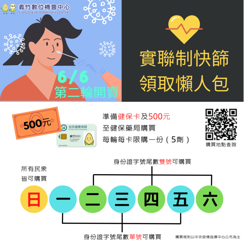 2015年9月2日後出生的孩童,家長在6月30日前都可以持健保卡到配合藥局免費領取一份5劑家用快篩試劑。買過實名制快篩的兒童仍可以領取。
