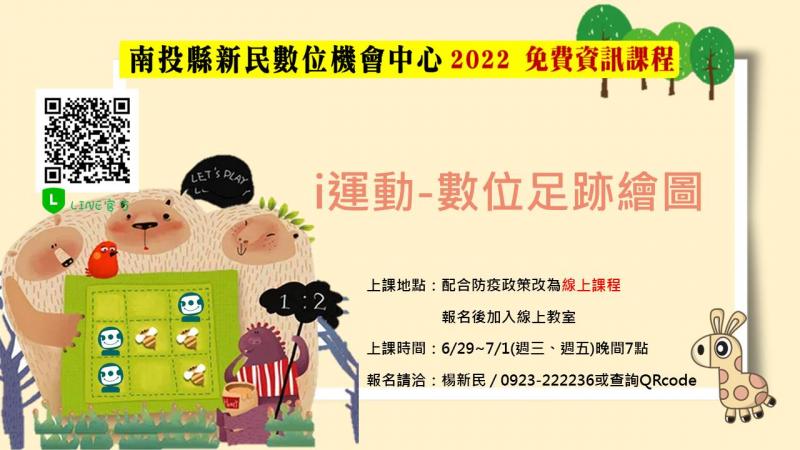 最新消息 DOC快訊 ::: <上一則 返回列表 下一則> 2022新民數位機會中心特色輔導課程-i運動-數位足跡繪畫 發布日期:2022-06-08 人氣:210 本次實體課程映應防疫政策改為線上課程 ★上課日期:改為2022/ 6/29(三)、7/1 (五) ★上課時間:晚上19:00-22:00 ★請加入新民DOC-LINE: https://lin.ee/IYSK2QN ~要發送貼圖給我們喔!!! 有任何問題可來電或加LINE詢問 南投縣新民數位機會中心-活動連絡人 ★楊新民/ 0923-222236/049-2739325 完成報名協助登入線上教室 <上一則 返回列表 下一則>
