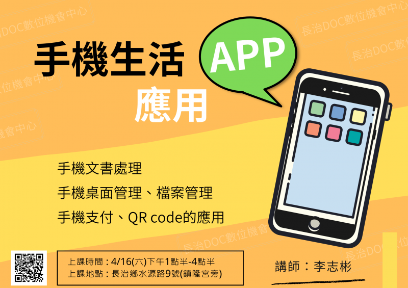 4/16(六) 手機生活APP應用課程 開始報名中