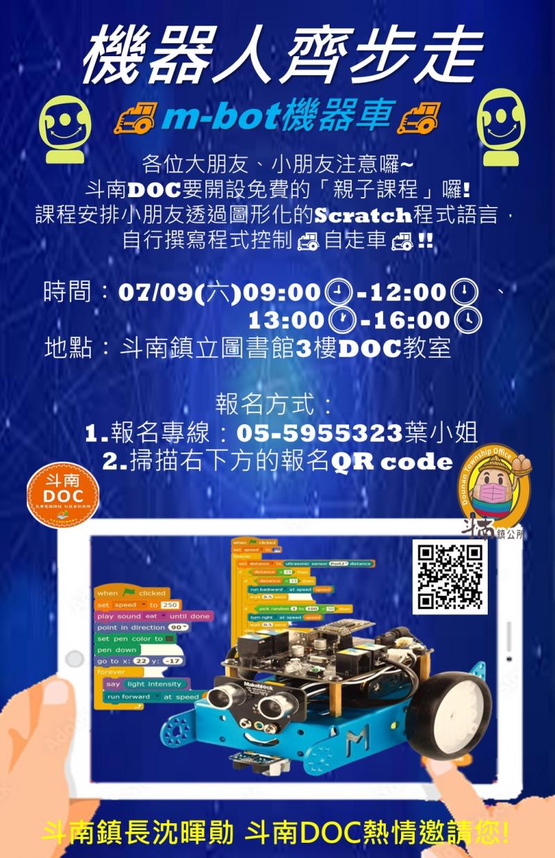 最新消息 DOC快訊 ::: <上一則 返回列表 下一則> 【斗南DOC課程】親子課程-機器人齊步走 發布日期:2022-06-21 人氣:173 各位大朋友、小朋友注意囉~ 斗南DOC免費的「親子課程」來囉! 千萬不要錯過體驗新興科技的機會喔!! 時間 : 07/09(六)上午09:00~12:00 、下午13:00~16:00 地點:斗南鎮立圖書館3樓DOC教室 報名網址 https://forms.gle/BG3Hgpr2THm579BS6 ※開課訊息歡迎學員幫我們轉傳分享,也非常歡迎學員邀請親朋好友一起來上課~ <上一則 返回列表 下一則>