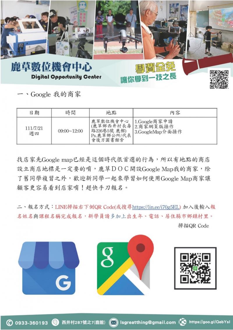 找店家先Google map已經是這個時代很首選的行為,所以有地點的商店設立商店地標是一定要的唷,鹿草DOC開設Google Map我的商家,除了舊同學複習之外,歡迎新同學一起來學習如何使用Google Map商家讓顧客更容易看到店家唷!趕快手刀報名。