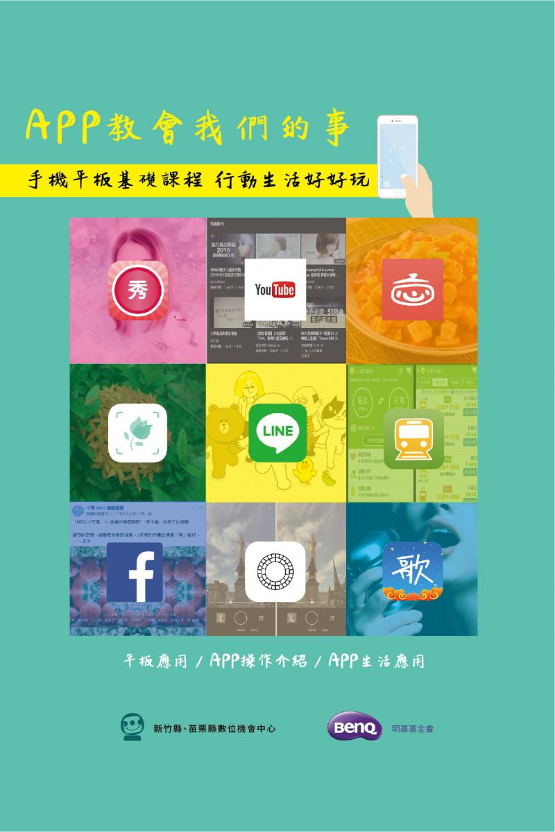 《APP 教會我們的事》帶領學員下載應用程式、推薦各式方便實用的小工具,歷年介紹 Google 進階搜尋、居家運動 App、Facebook 進階功能、日常輻射知識、空氣環境品質查詢等,眾多資訊透過手機輕鬆取得,生活機能更加便利。
