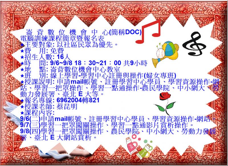 最新消息 DOC快訊 ::: <上一則 返回列表 下一則> 線上學習-學習中心註冊與操作招生海報 發布日期:2022-08-24 人氣:202 線上學習-學習中心註冊與操作招生海報 <上一則 返回列表 下一則>