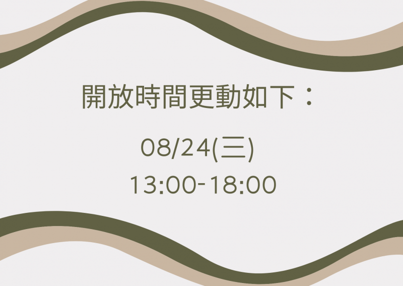 最新消息 DOC快訊 ::: <上一則 返回列表 下一則> 【開館時間更動公告】 發布日期:2022-08-23 人氣:180 08/24(三) 開館時間更動為13:00~18:00 造成不便,請見諒! <上一則 返回列表 下一則>