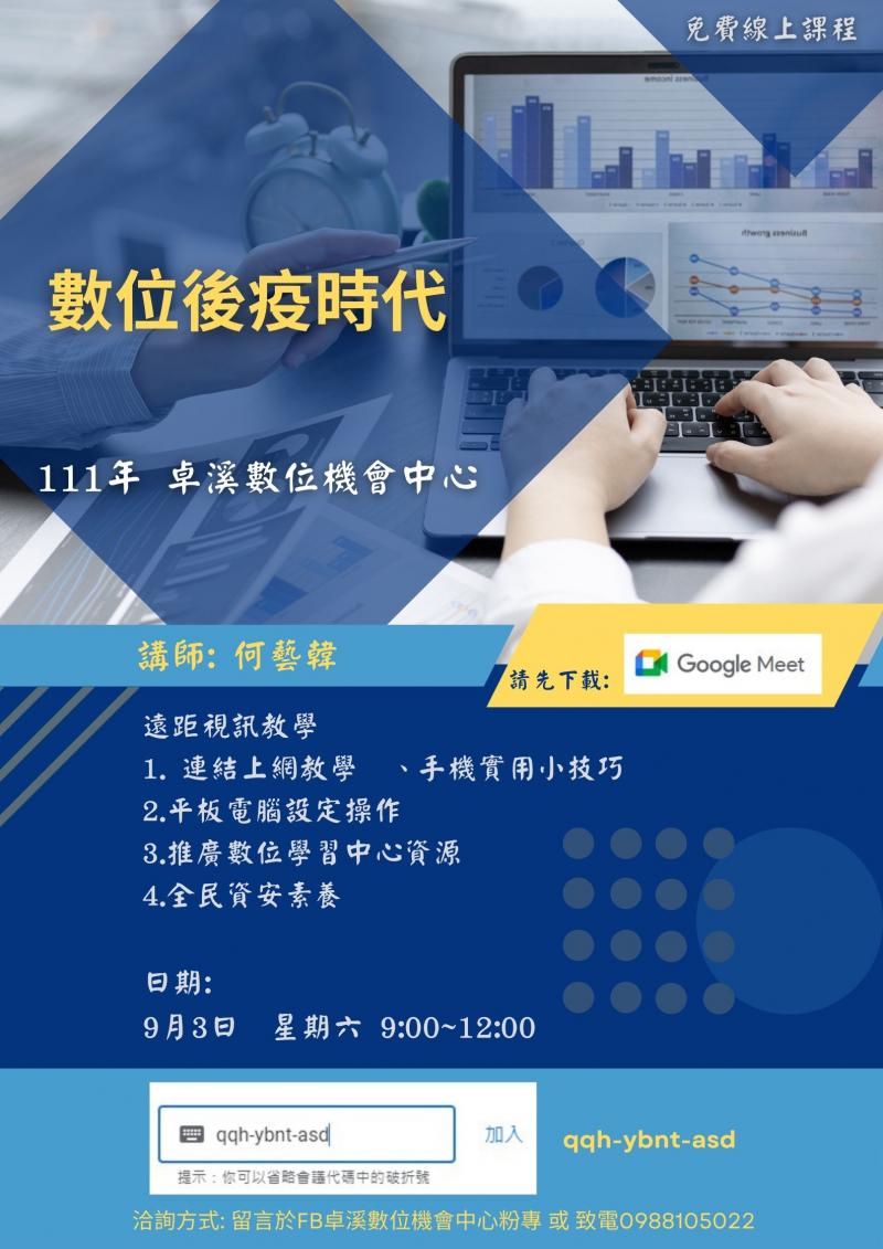 最新消息 DOC快訊 ::: <上一則 返回列表 下一則> 111卓溪DOC課程-數位後疫時代 發布日期:2022-09-01 人氣:160 免費線上課程-遠距視訊教學 歡迎大家來連線~ <上一則 返回列表 下一則>