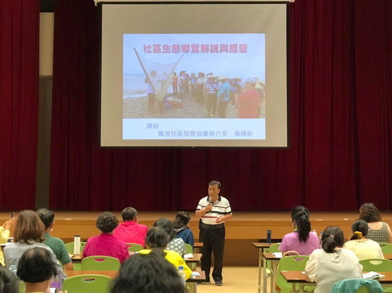 枋山DOC黃隆献執行長接受屏東縣客庄文化觀光解說員培訓之邀,至縣府大禮堂演講"社區生態導覽解說與經營",分享如何運用數位讓導覽解說更加吸睛,簡報闡素了楓港社區四季小旅行整合了枋山數位機會中心的數位元素,如影片拍攝、3D動畫、繪本、動漫、文創商品等等的開發,豐富了參訪導覽的內涵,專屬Logo的設計跟社區IP的申請,更是提升了觀光競爭力。