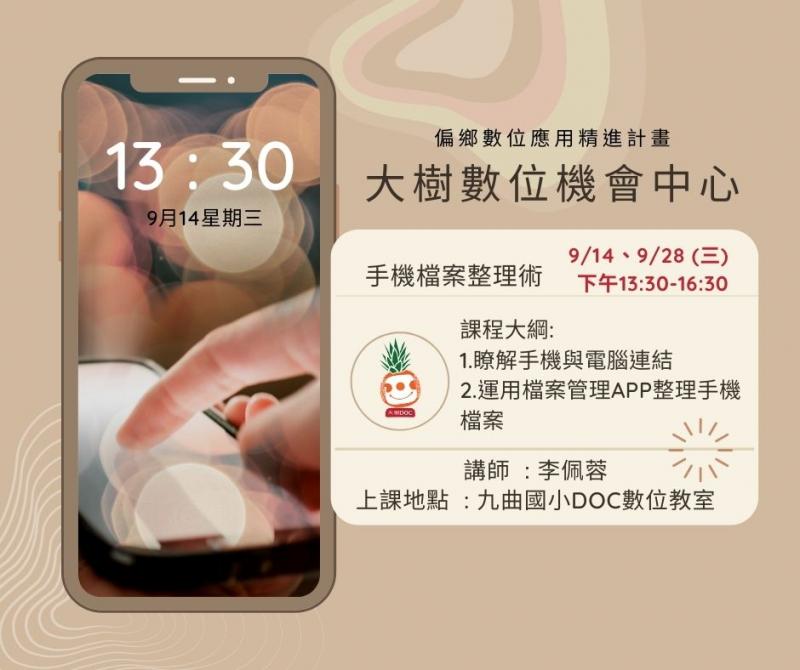 上課日期 : 9/14、9/28 (三) 下午13:30-16:30