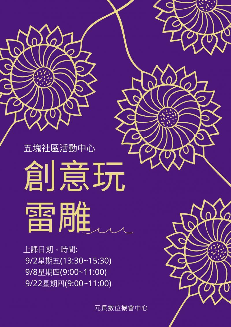 最新消息 DOC快訊 ::: <上一則 返回列表 下一則> 創意玩雷雕 發布日期:2022-08-16 人氣:186 9月份行動DOC課程 使用平板APP 就可以繪出可愛插圖 運用雷雕技術讓可愛的插圖成為個人專屬杯墊圖案 元長DOC讓每個人都可以成為充滿創意的創作家! 「創意玩雷雕」課程 上課日期、時間: 9/2(星期五)下午13:00~16:00 9/8(星期四)早上9:00~12:00 9/22(星期四)早上9:00~12:00 上課地點:五塊村社區活動中心 <上一則 返回列表 下一則>