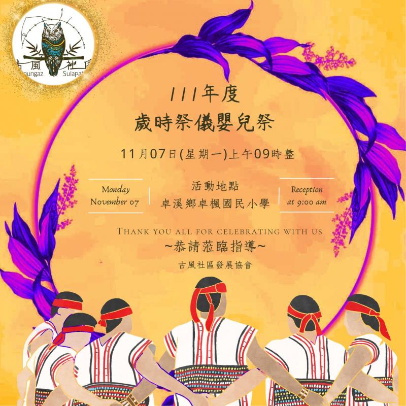 最新消息 DOC快訊 ::: <上一則 返回列表 下一則> 111年度 布農族歲時祭儀-嬰兒祭 發布日期:2022-10-31 人氣:189 111年度 布農族歲時祭儀-卓溪鄉古風村 11月07日 星期一 祈祝嬰兒平安長大的嬰兒祭。 <上一則 返回列表 下一則>