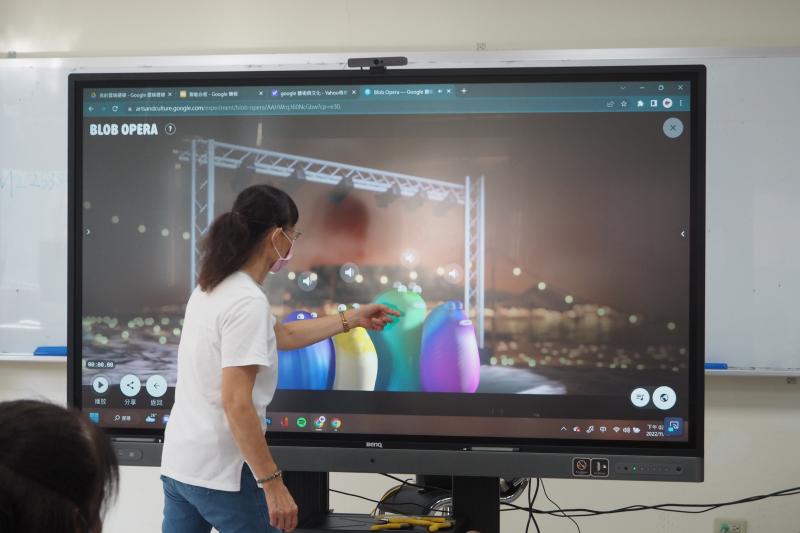 透過智慧白板與學員互動,課堂中老師請學員們下載APP玩單人拼圖,也有一起玩多人拼圖,完成的一剎那,大家都非常有成就感呢;老師也介紹智慧白板的有趣遊戲,老師將學員分成兩組,一起比賽「我畫你猜」的遊戲,大家也玩得很高興喔。
