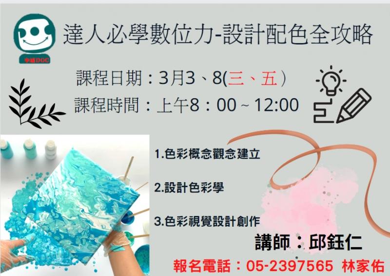 課程日期:3月3、8日(星期三、五)