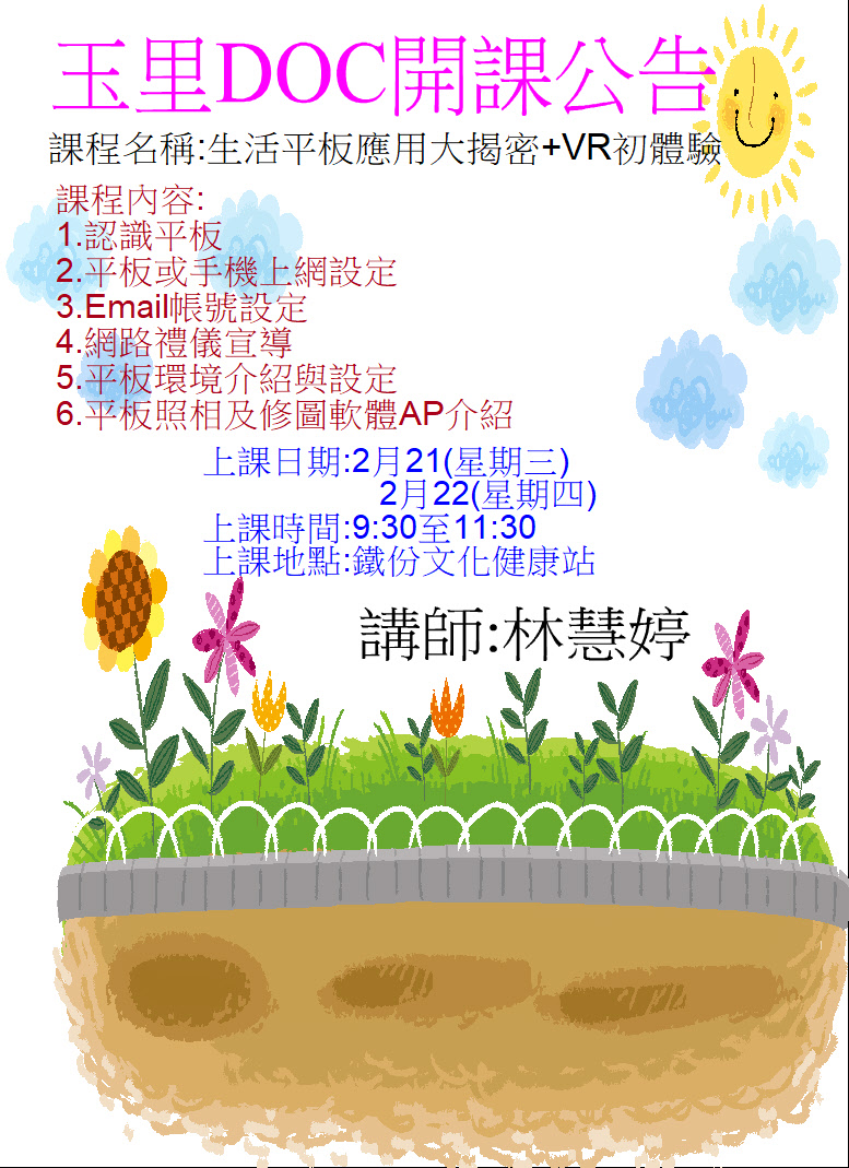 玉里DOC生活平板應用大揭密+VR初體驗開課公告