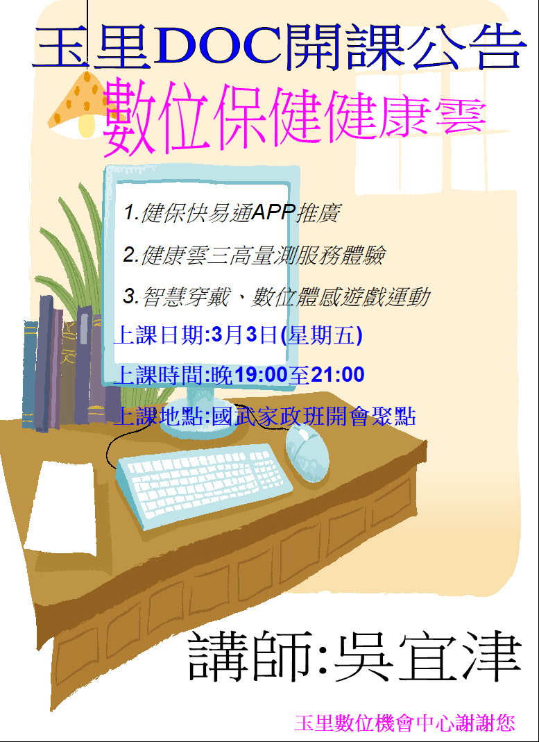 玉里DOC輔導團數位保健健康雲開課公告
