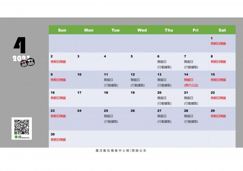 公告訊息:開閉館日四月號