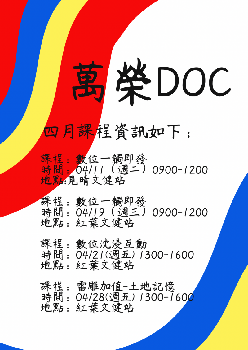 最新消息 DOC快訊 ::: <上一則 返回列表 下一則> 四月份課程出爐囉! 發布日期:2023-04-01 人氣:307 本月課程已出爐~ 歡迎有興趣的學員一同參與喲。 <上一則 返回列表 下一則>