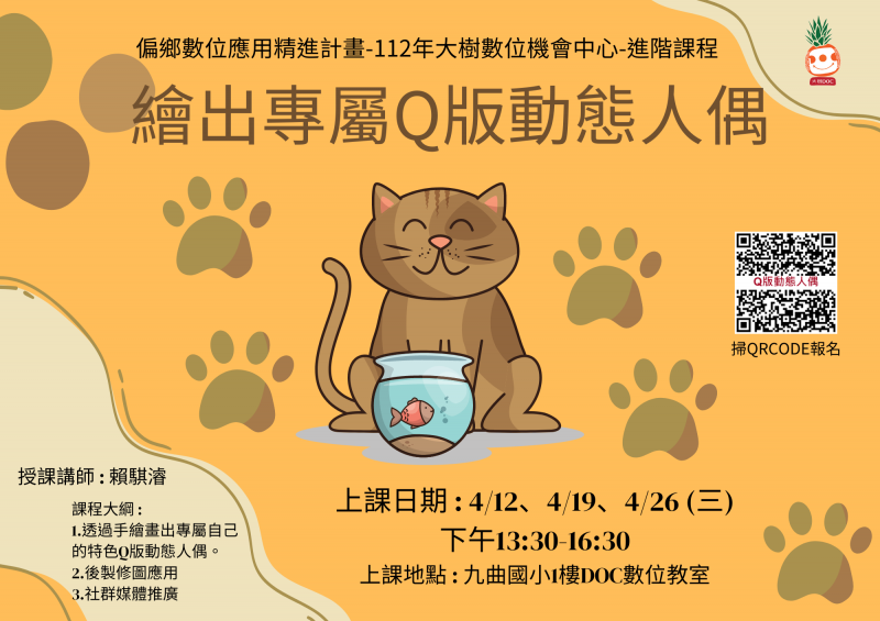最新消息 DOC快訊 ::: <上一則 返回列表 下一則> 大樹DOC 繪出專屬Q版動態人偶課程-報名名單 發布日期:2023-04-10 人氣:192 繪出專屬Q版動態人偶(即將滿額) 上課日期 : 4/12、4/19、4/26 (三) 13:30-16:30 上課地點 : 九曲國小1樓DOC數位教室 報名連結 : https://forms.gle/Xyrco9U5oBWEGZW68 報名名單 : 郭○汝、林○如、于○華、黃○珠、連○誠、王○珍、梁○卿、陳○英、黃○甄、柯○蘭、洪○瑩、黃○蓮 <上一則 返回列表 下一則>