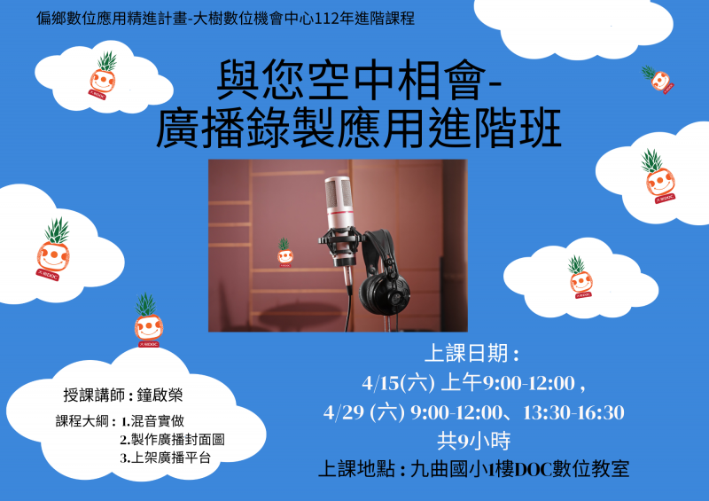 課程名稱 : 與您空中相會-廣播錄製應用進階班 (即將滿額)