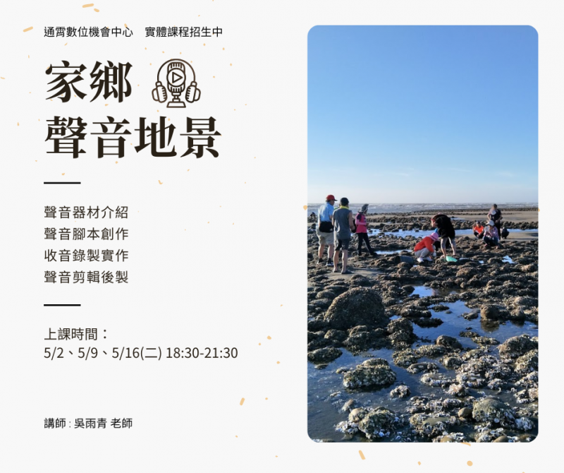 聲音節目越來越受大眾喜愛,不同於圖文和影片的傳遞形式,聲音有著解放視覺、聆聽感受的魅力。這門有趣又實用的聲音課程,帶你從認識聲音原理、聲音錄製到混音,製作出有特色的通霄語音故事!