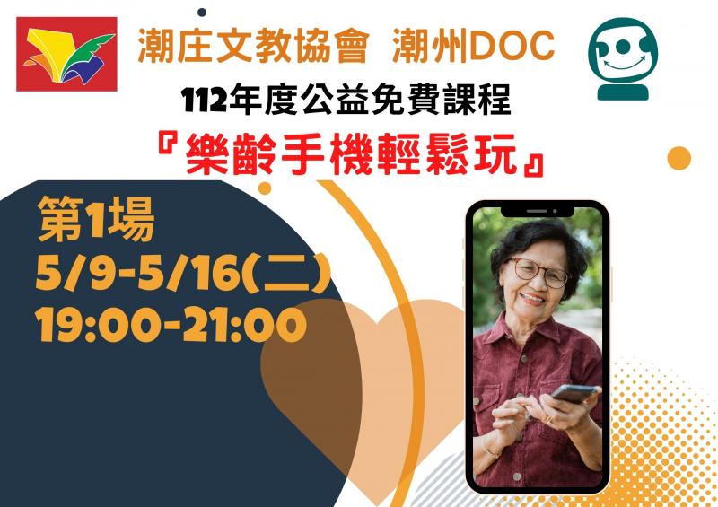 最新消息 DOC快訊 ::: <上一則 返回列表 下一則> 112年度第1場 #免費公益課程樂齡手機輕鬆玩(第1場) 發布日期:2023-04-26 人氣:226 #潮庄文教協會 #潮州DOC 112年度第1場 #免費公益課程 #樂齡手機輕鬆玩(第1場) 時間:112.5.9(週二) 晚上19:00-21:00 5.16(週二) 晚上19:00-21:00共2週4小時 上課地點:潮州鎮光華社區活動中心2樓 (潮州鎮南京路163號) <上一則 返回列表 下一則>