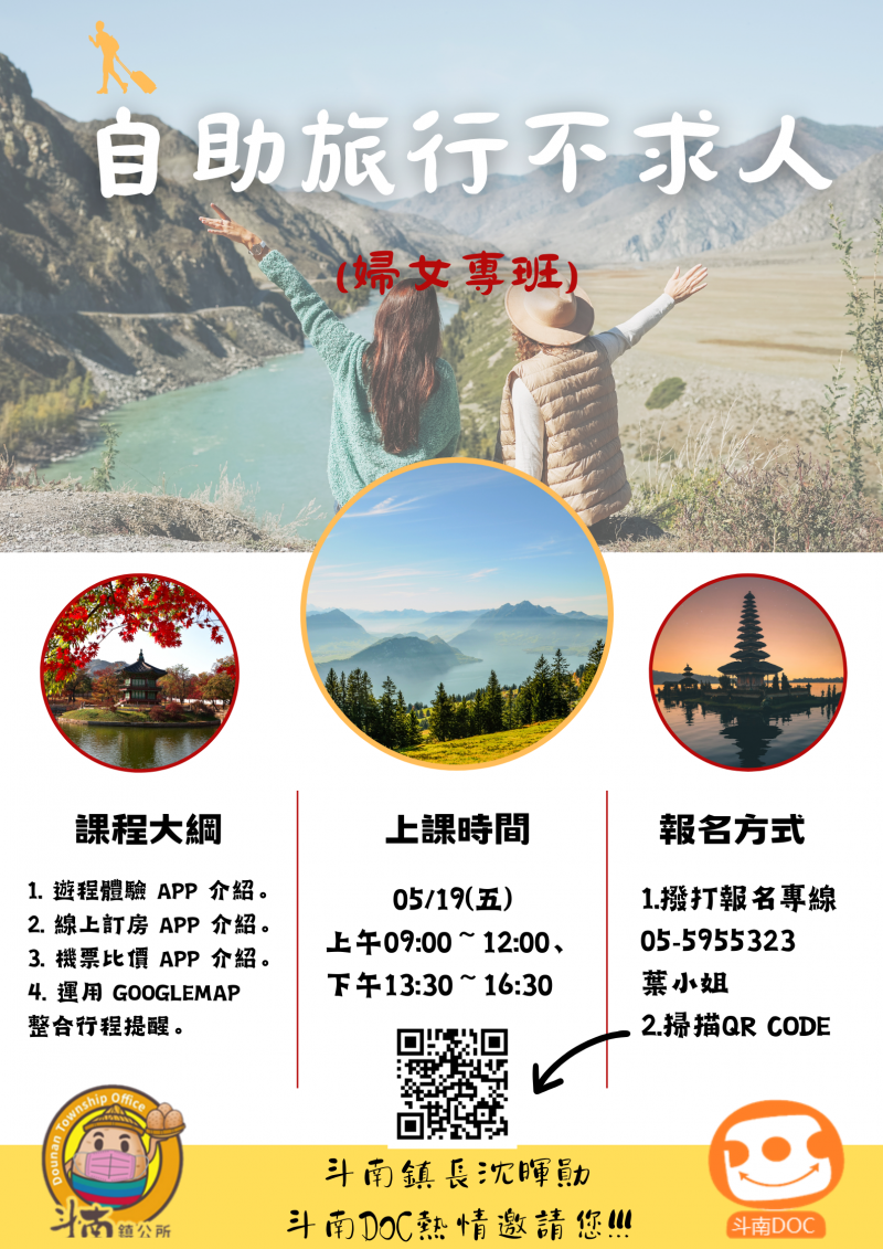 快來報名參加斗南DOC"自助旅行不求人"課程,讓你成為自主規劃旅行的達人!