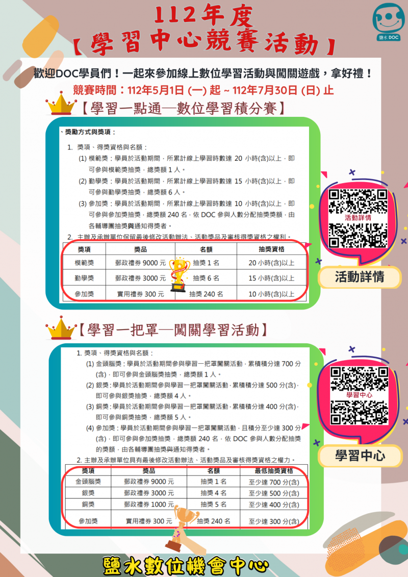 112年度【學習中心競賽活動】5/1(一)開跑嘍!