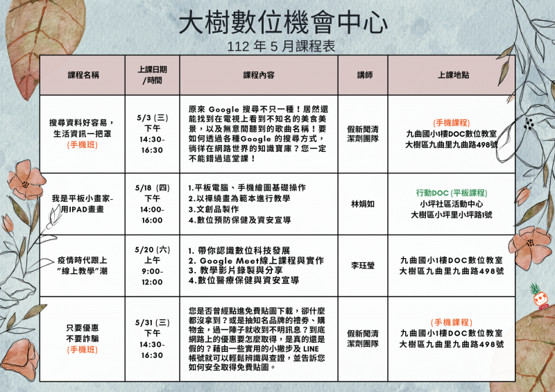 課程時間:112.5.20 (六)上午 9:00-12:00
