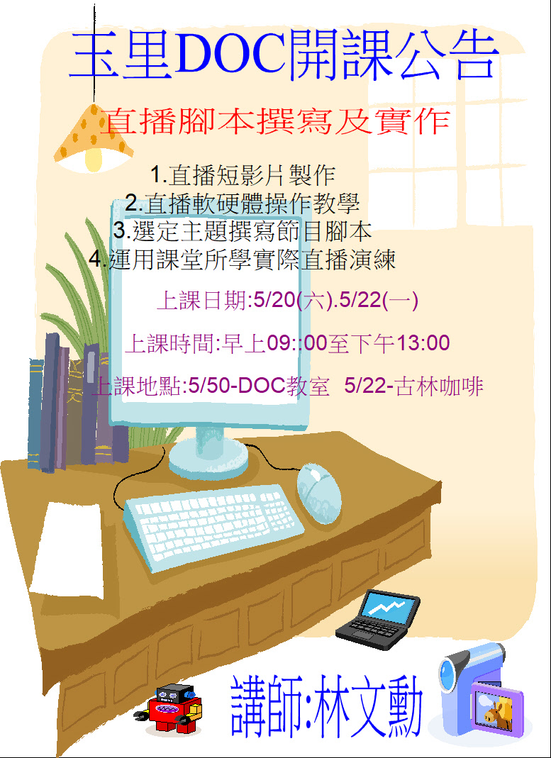 玉里DOC直播腳本撰寫及實作開課公告