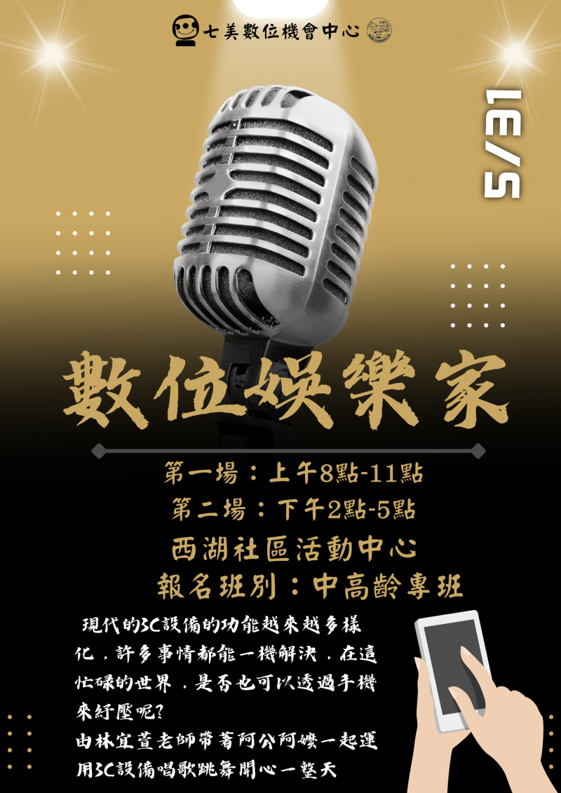 最新消息 DOC快訊 ::: <上一則 返回列表 下一則> 【課程報名】數位娛樂家 發布日期:2023-05-20 人氣:214 現代的3C設備的功能越來越多樣化, 許多事情都能一機解決,在這忙碌的世界, 是否也可以透過手機來紓壓呢? 由林宜萱老師帶著阿公阿嬤一起運用3C設備唱歌跳舞開心一整天 《活動時間》 ◆5月31日(三) 第一場:上午8點─11點 第二場:下午2點-5點 《活動地點》七美鄉西湖村活動中心 《活動班別》中高齡專班 《報名專線》06-9971117 歡迎各位阿公阿嬤一同來參與~~~ 相關訊息會在七美數位機會中心粉絲團公告:https://www.facebook.com/chimeidoc <上一則 返回列表 下一則>