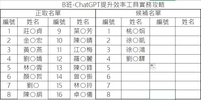 最新消息 DOC快訊 ::: <上一則 返回列表 下一則> B班-ChatGPT提升效率工具實務攻略-正取名單 發布日期:2023-06-13 人氣:167 B班-ChatGPT提升效率工具實務攻略 請珍惜上課資源唷!!如要取消,請先告知。 聯絡方式:LINE:@738qvtwp 或是FB私訊 <上一則 返回列表 下一則>
