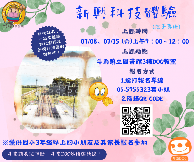 各位大朋友和小朋友們注意啦!~斗南DOC將於暑假舉辦免費的親子課程嘍~