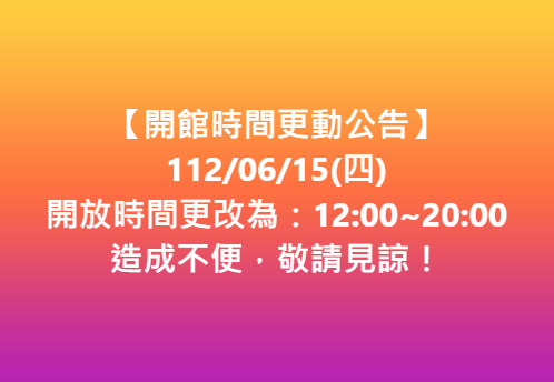 最新消息 DOC快訊 ::: <上一則 返回列表 下一則> 【開館時間更動公告】 發布日期:2023-06-14 人氣:123 112/06/15(四) 開放時間更改為:12:00~20:00 造成不便,敬請見諒! <上一則 返回列表 下一則>
