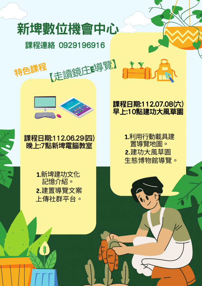 最新消息 DOC快訊 ::: <上一則 返回列表 下一則> 走讀鏡庄E導覽 發布日期:2023-06-19 人氣:156 特色課程【走讀鏡庄E導覽】 1.新埤建功文化記憶介紹。 2.利用行動載具建置導覽地圖。 3.建置導覽文案上傳社群平台。 <上一則 返回列表 下一則>