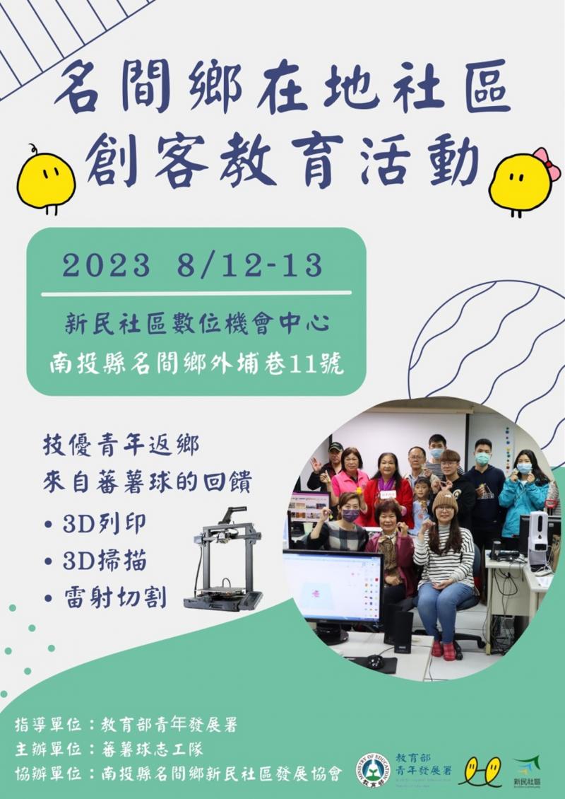 最新消息 DOC快訊 ::: <上一則 返回列表 下一則> 名間鄉在地社區創客教育活動 發布日期:2023-07-08 人氣:254 為增進社區行銷能力與發展多樣性,打破傳統被動推銷,加入現今社會新興科技,開設『名間鄉之在地社區創客教育活動』, 民眾可利用假日時間充實自我行銷推廣及實作能力。請大家踴躍報名,至表單填寫您的資訊,謝謝。 【免費課程】 <上一則 返回列表 下一則>