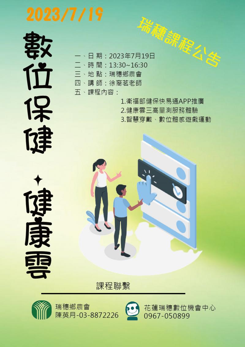 最新消息 DOC快訊 ::: <上一則 返回列表 下一則> 課程公告:數位保健、健康雲 發布日期:2023-07-12 人氣:157 1.衛福部健保快易通APP推廣 2.健康雲三高量測服務體驗 3.智慧穿戴、數位體感遊戲運動 <上一則 返回列表 下一則>