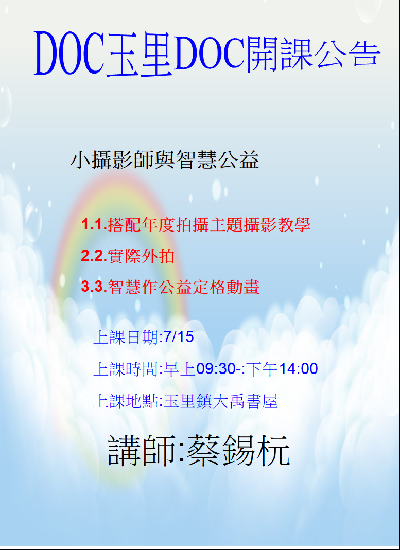 玉里DOC開課公告(小攝影師與智慧公益)
