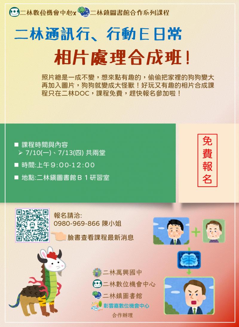 最新消息 DOC快訊 ::: <上一則 返回列表 下一則> 相片合成處理班 發布日期:2023-07-17 人氣:176 大家下午好 炎炎夏日又來臨了,放暑假囉! 天氣太熱出門玩快融化了嗎? 七月課程開放報名囉! 「相片合成」課程教大家如何修出美美的照片,DOC還有準備相印機讓大家學習操作,現場洗出自己的美照喔! <上一則 返回列表 下一則>