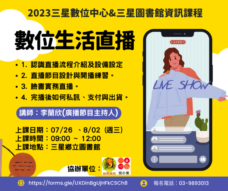 上課地點:三星鄉立圖書館2F電腦教室。