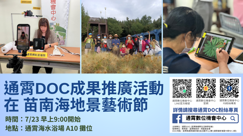 通霄DOC將於7/23早上9:00於通霄海水浴場舉辦數位推廣活動。