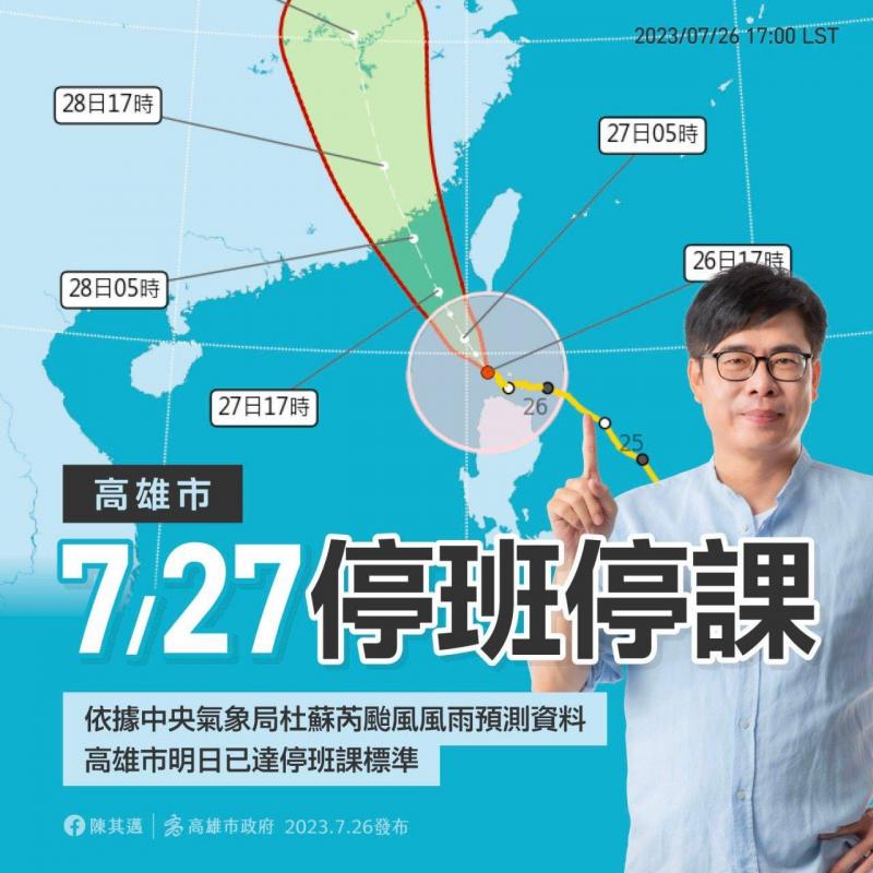 最新消息 DOC快訊 ::: <上一則 返回列表 下一則> 7/27因應中颱杜蘇芮高雄市府停班課,茄萣DOC休館一天 發布日期:2023-07-27 人氣:175 【高市府公告】 根據中央氣象局資訊宣佈今(27)日全天停止上班上課。 <上一則 返回列表 下一則>
